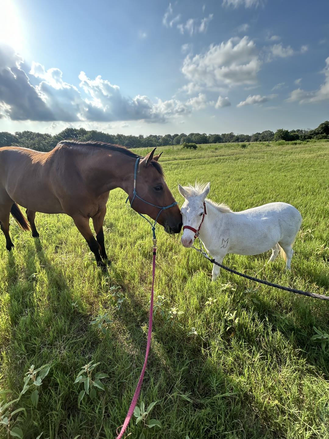 - Gets along with mares, geldings, ponies, minis, donkey and even farm animals like cows, sheep, ducks and goats.