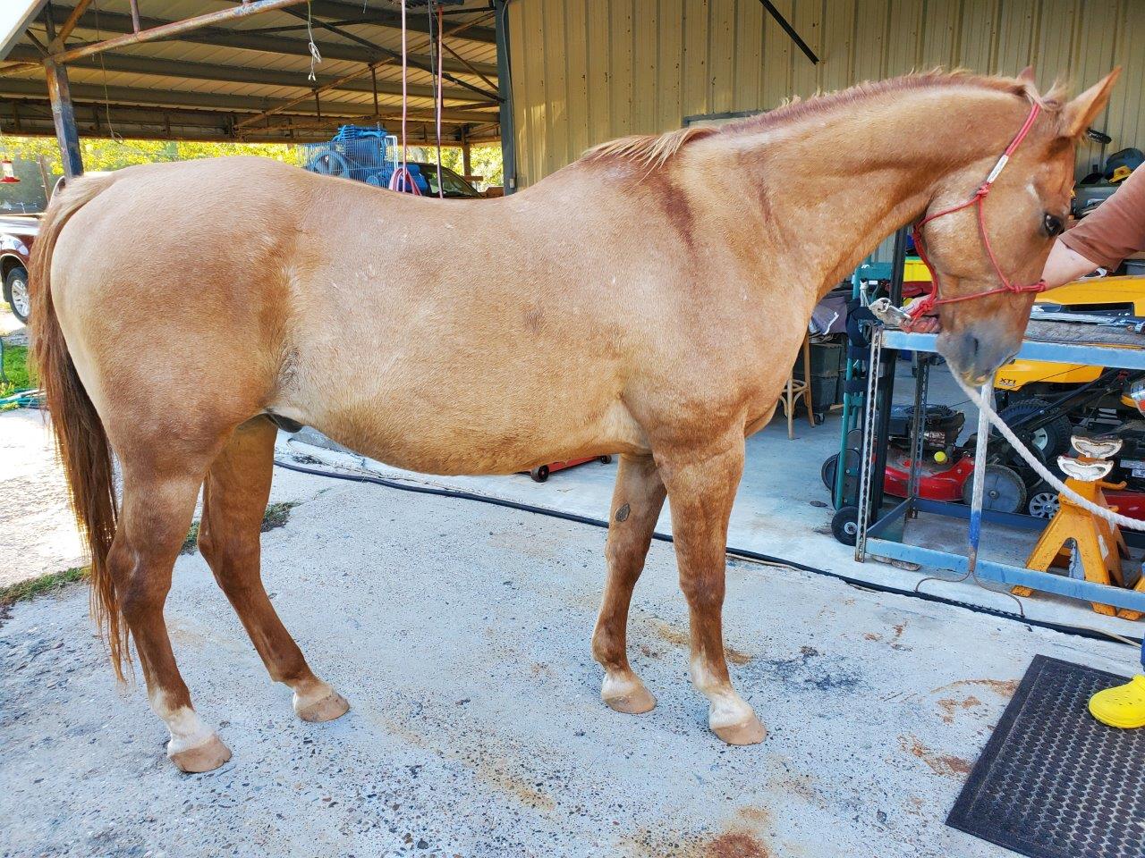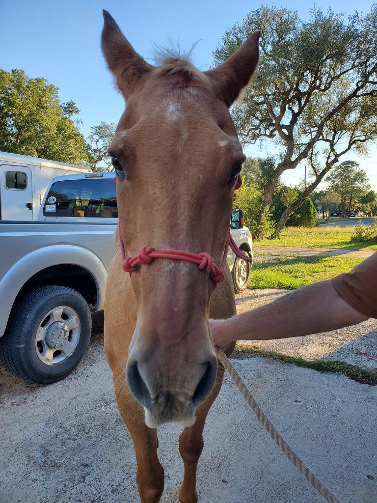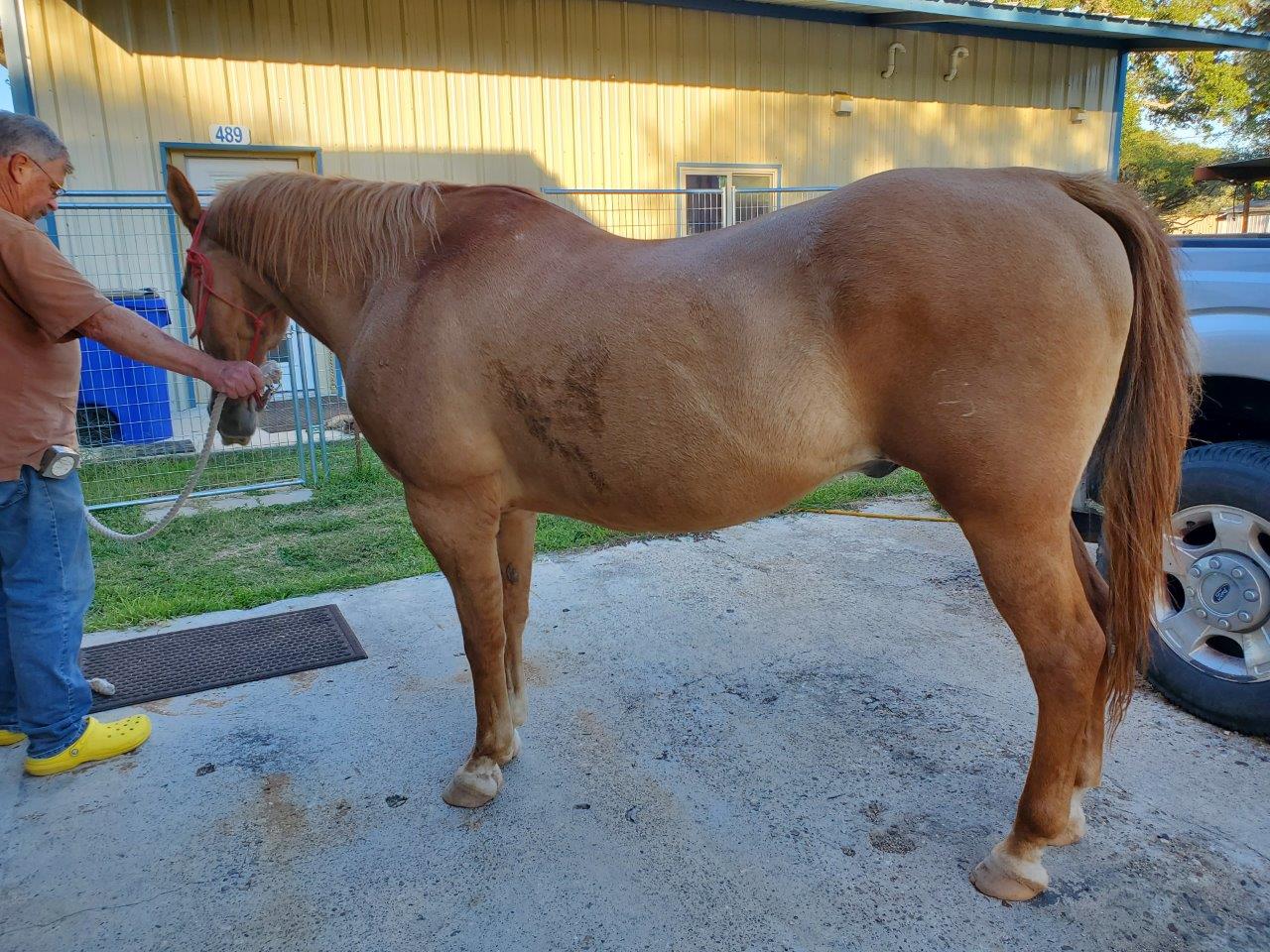 Buckaroo Bob suffered an injury to his eye in spring 2023. He was adopted but quickly returned because the adopter’s vet discovered the injury had left a scar on his eye. Scars on eyes heal slowly, so we will not know the extent of the permanent scarring for quite some time. Buckaroo Bob’s adopter said he was “looky” on the side with the scar and she did not feel he would be good for riding as originally thought.