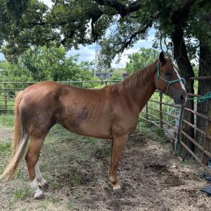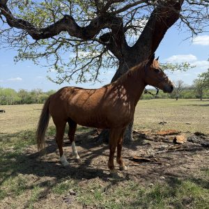 Addy had one loving owner her whole life until circumstances changed and she was placed with us. She had been trained to ride when she was younger, but she hadn’t been ridden in some time until she arrived at Bluebonnet. With the help of her Youth Training Challenge partner, she has blossomed beautifully. Her young rider says she’s been amazing to work with — quick to learn, level-headed, and always eager to please. Addy adores her youth rider, the younger children at the barn, and foals. She will be a joy for her lucky adopter.
