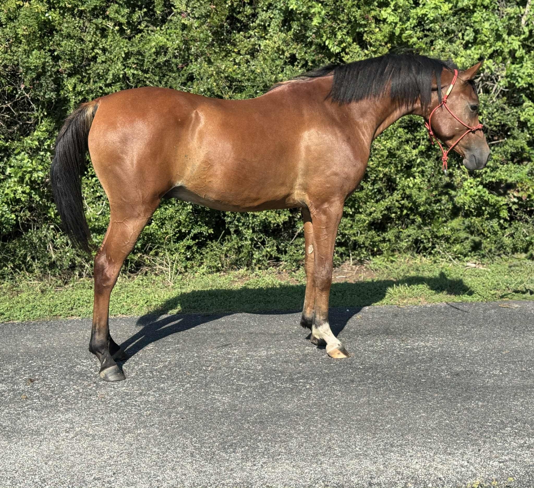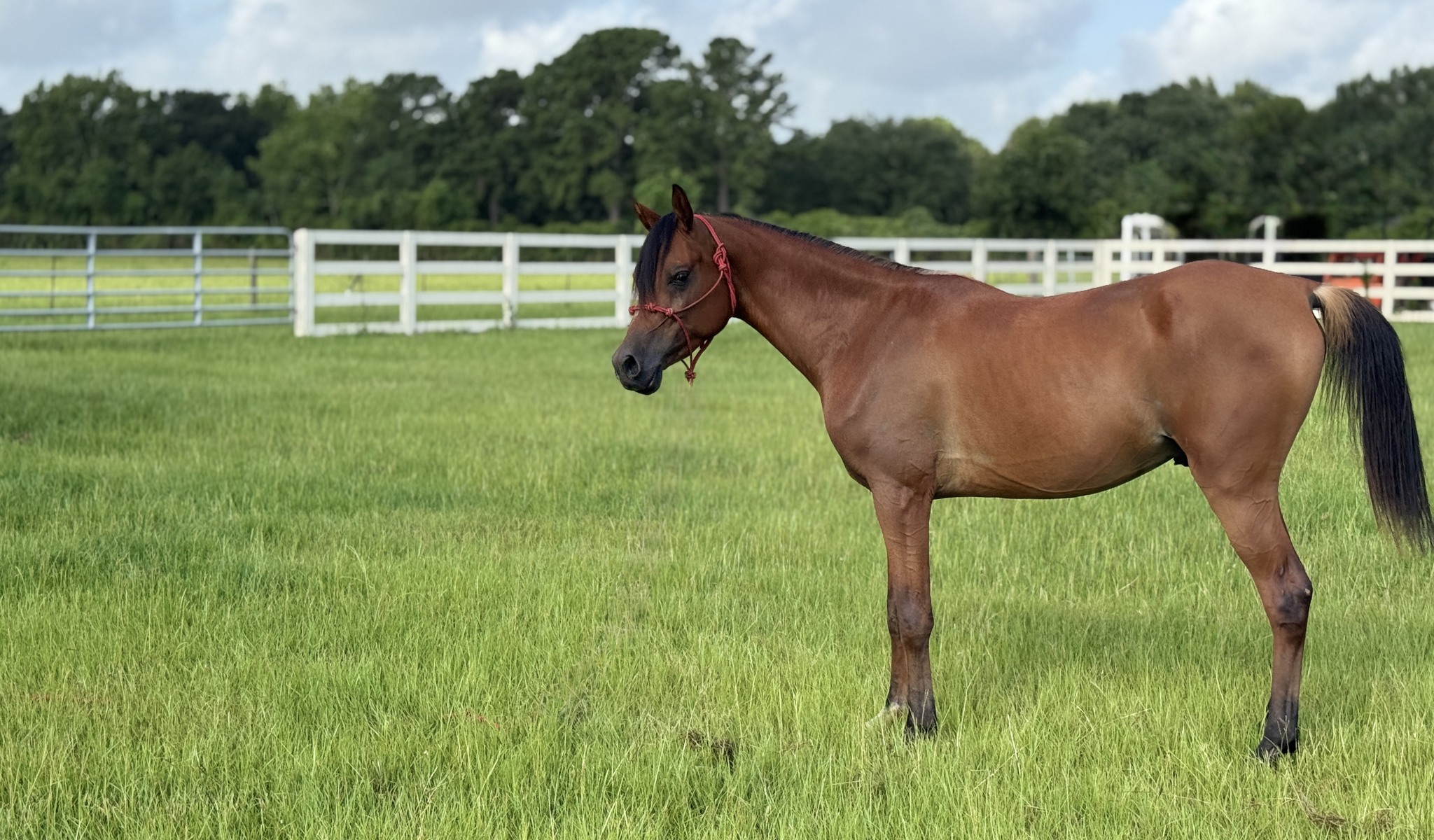Though Naji hadn’t had much handling before arriving at Bluebonnet, he quickly showed his intelligence and eagerness to learn. True to Arabian nature, he is curious, affectionate, and loves people. He’s looking for a special person to connect with and could be trained for almost anything, from trail riding to competitive disciplines. Naji is at the perfect age to start under saddle and develop into the horse of someone’s dreams.