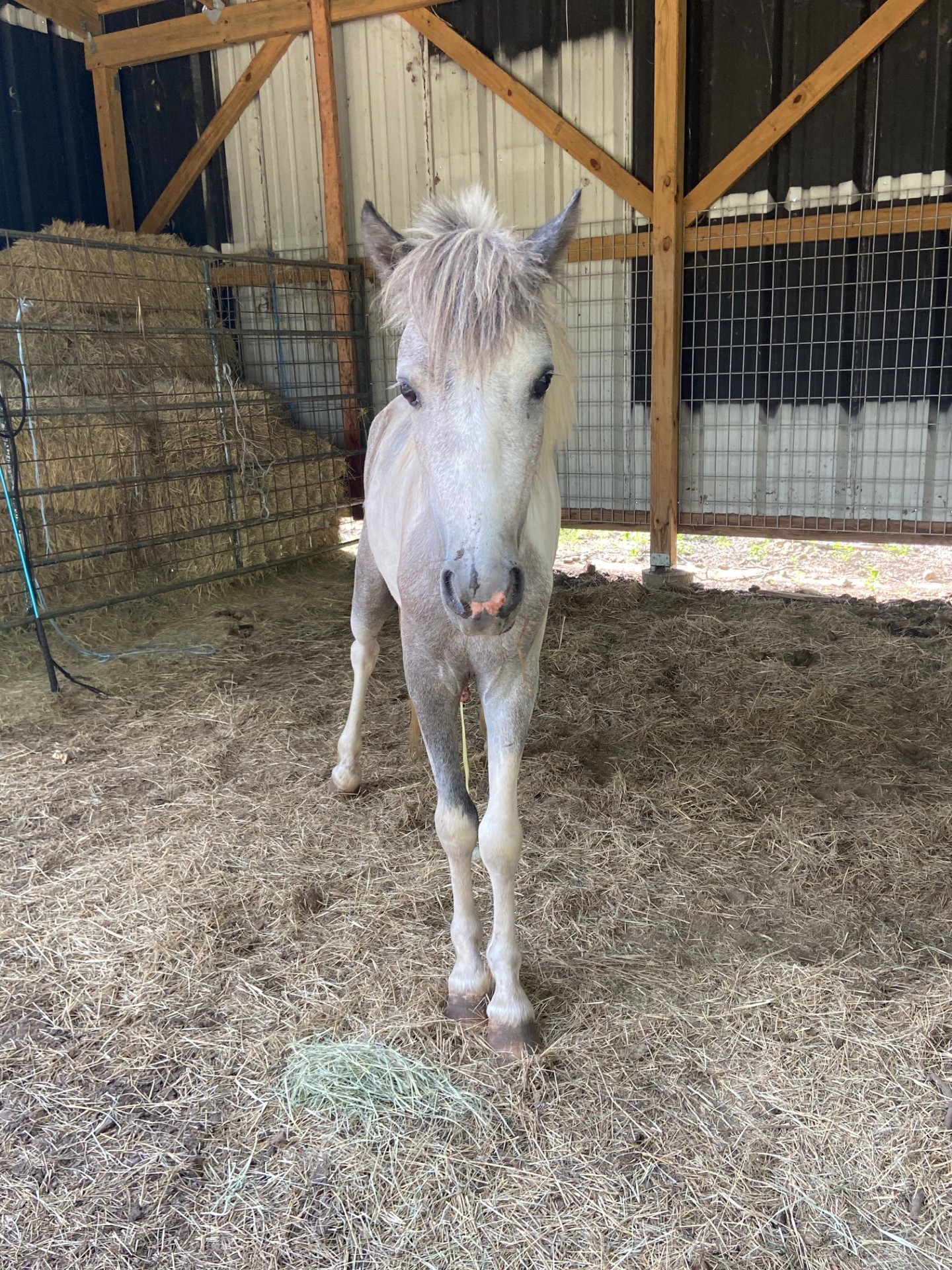 Prince Caspian is a 2-year-old gray, pinto gelding who came to Bluebonnet with only minimal halter training. Despite his young age and limited experience, he has shown himself to be gentle, affectionate, and eager to learn. He may not always know what is being asked of him yet, but he tries hard to figure it out and enjoys attention from people. He’s spent the last four months with a family, getting used to daily life as a beloved member of the family and working on his skills. He’s ready to share his love with an adopter and their family!