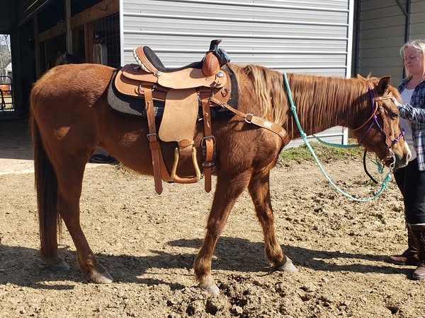 Andoria is amazing because she has the perfect blend of heart, resilience, and versatility. She has blossomed into a kind, willing partner who genuinely enjoys people (especially if they come with a bribe in hand!). She’s steady and confident whether you’re riding alone, in a group, through water, or down a parade route, and she takes new experiences in stride. Andoria is the kind of horse who makes every ride a joy.