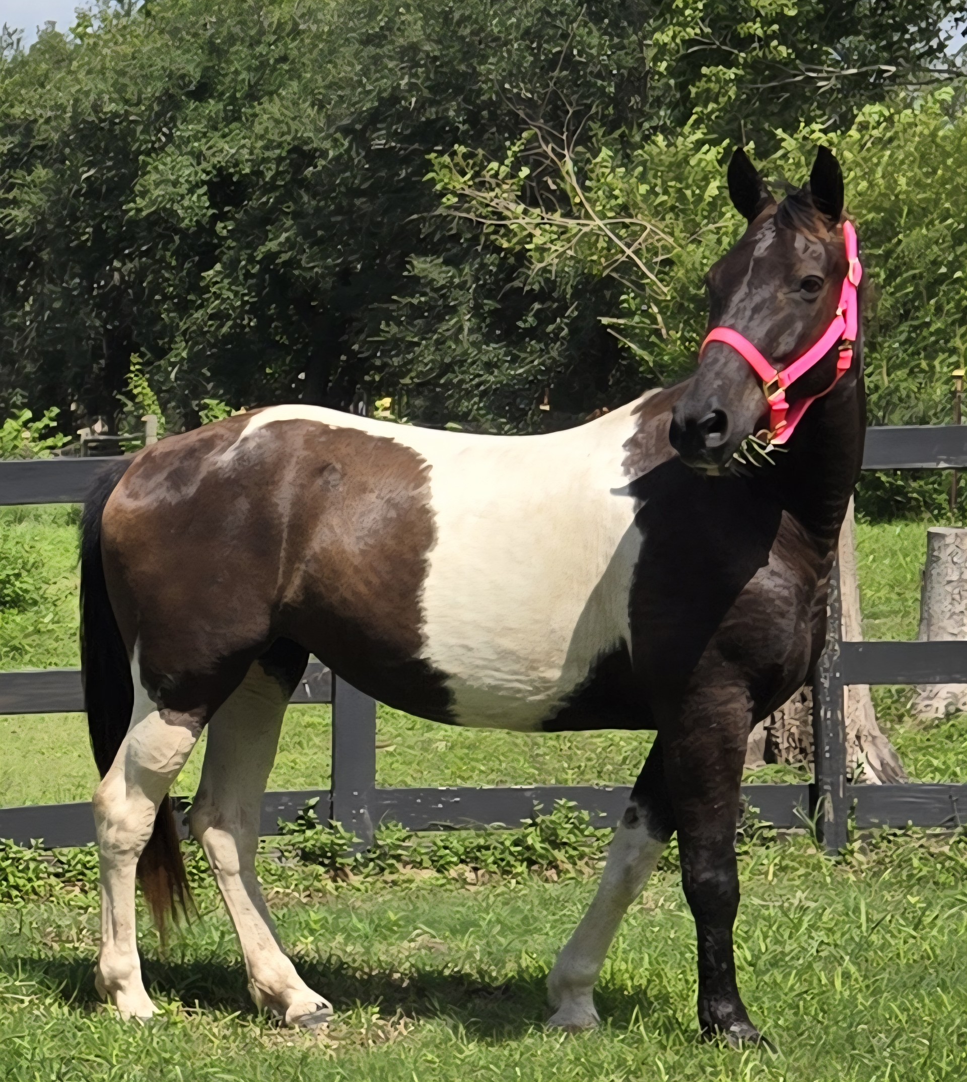 Oreo is the kind of mare who wants nothing more than to bond with her person. From once running from the halter to now being the first to come greet you, she has shown how much she values connection. With her kind nature, smooth gaits, and eager-to-please attitude, she’s on her way to becoming a versatile, family-friendly riding partner. With more training, Oreo will be a lifetime of fun, adventure, and love.