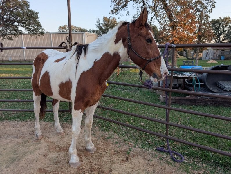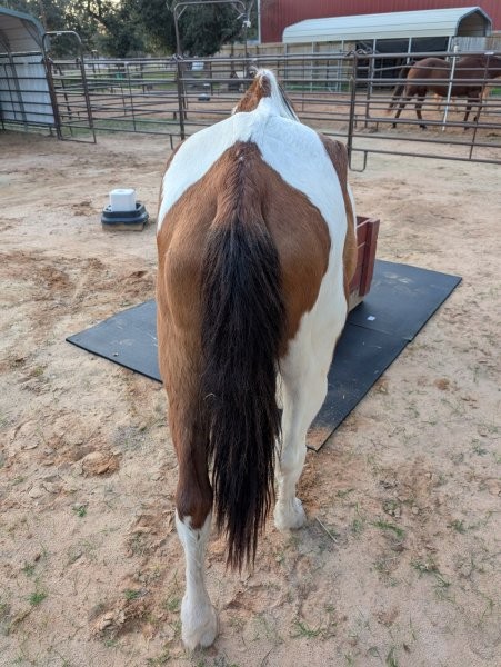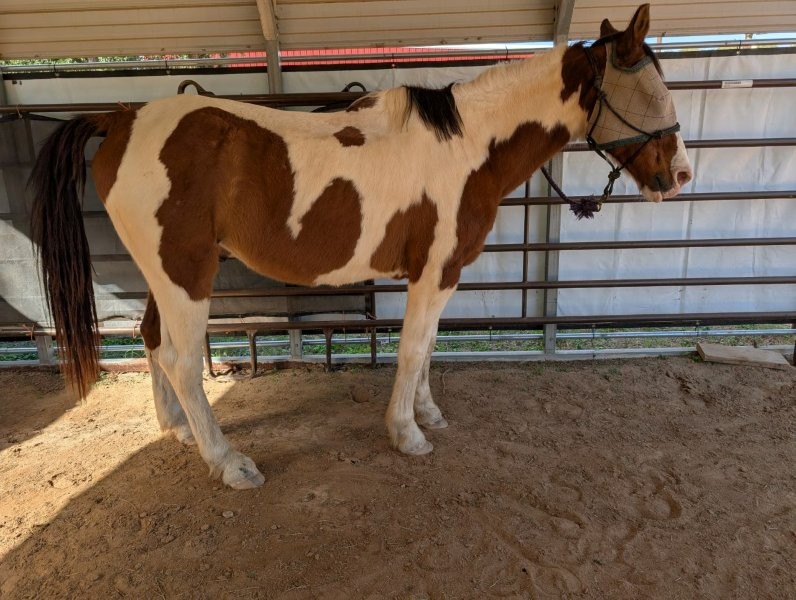 Stetson was donated to us when his owner could no longer care for him. He is very easy to handle, loads well, loves attention and is good for the farrier and vet. It was reported that he has been ridden in the past as a ranch horse. He'll be evaluated when he gains more weight.
