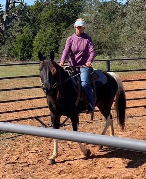 Nadia came to Bluebonnet as a young horse who hadn’t had much handling. Despite her rocky start, since she came to Bluebonnet as a young horse, she's had good care for most of her life. Her first foster home/adopter worked with her on the ground and then started her under saddle. She didn’t get to ride a lot, but Nadia did well. She was green under saddle when she returned. Nadia was ridden some by a non-pro in an arena, over obstacles and in the round pen. She felt Nadia was very green and needed a more experienced rider to finish her out and bring out her full potential. Nadia spent some time training with Hilary Lobue of Hummingbird Hill Horse Training during the fall of 2019 to work on her basics under saddle.