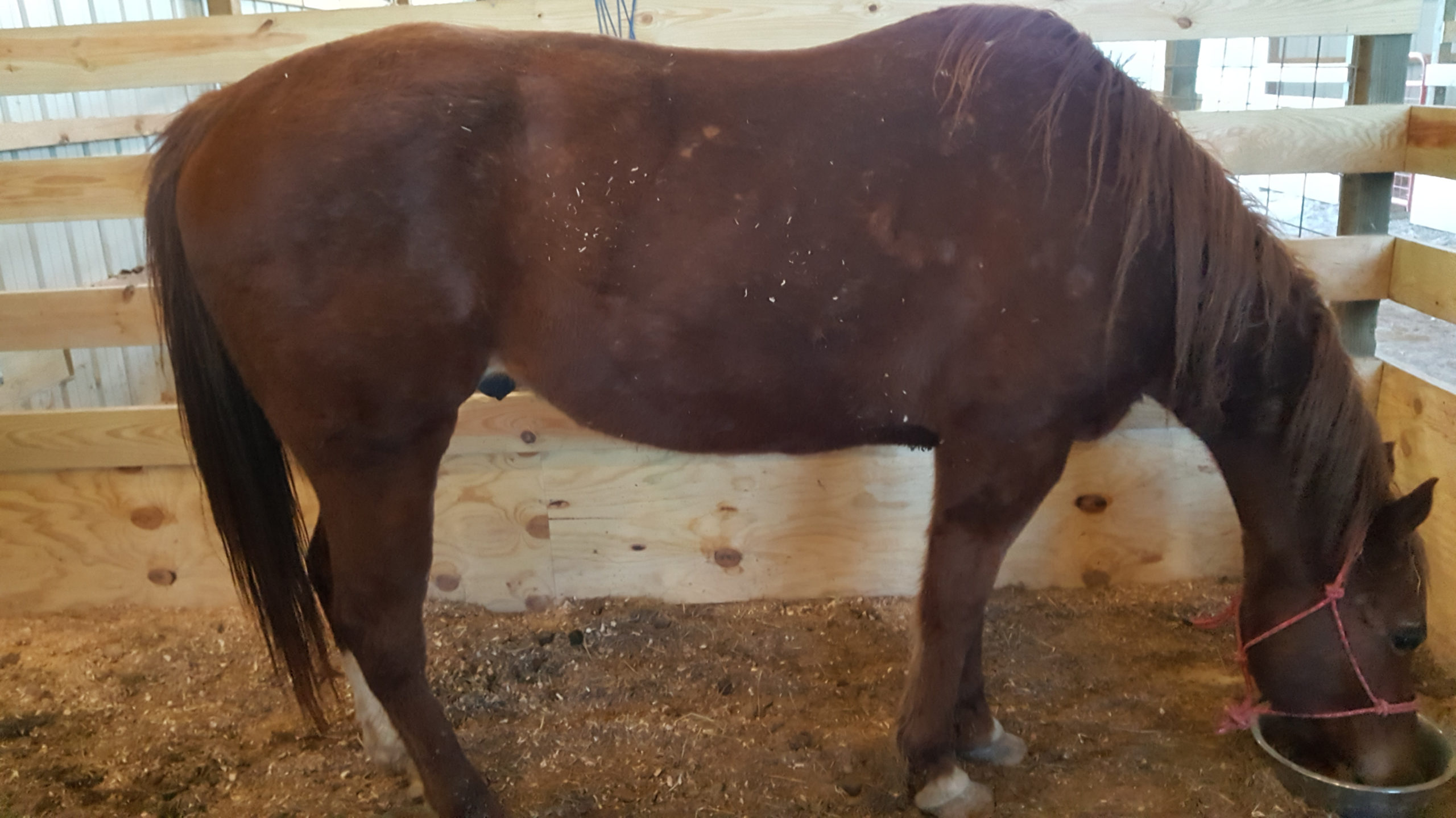 Mister Clyde was removed from negligent owners and placed with Bluebonnet by animal control. He gained weight and blossomed into a beautiful horse. He moved to a new foster home over the summer, and they decided to adopt him!