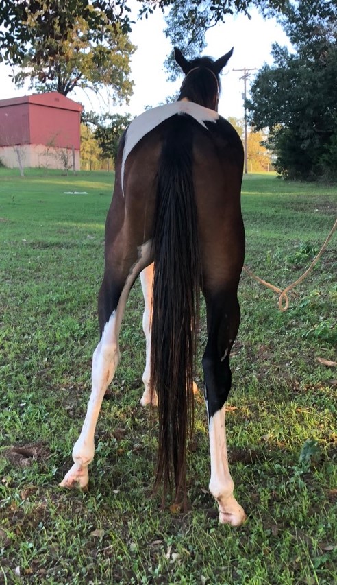 Showstopper went straight to a trainer for about six weeks of halter training. He’s learning to lead, lounge, stand tied, and have his feet handled. He's spending June-October 2019 with trainer Madison Amazon to be started under saddle.